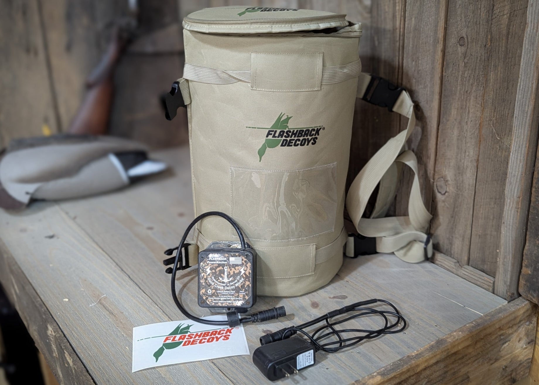 Every Flashback comes with and is powered by the PowerAnchor. This patent pending technology powers your Flashback while also playing the roll of a traditional decoy weight. It is less than 14 ounces and slightly larger than a deck of cards. Using your Flashback is now as easy as using a traditional decoy!